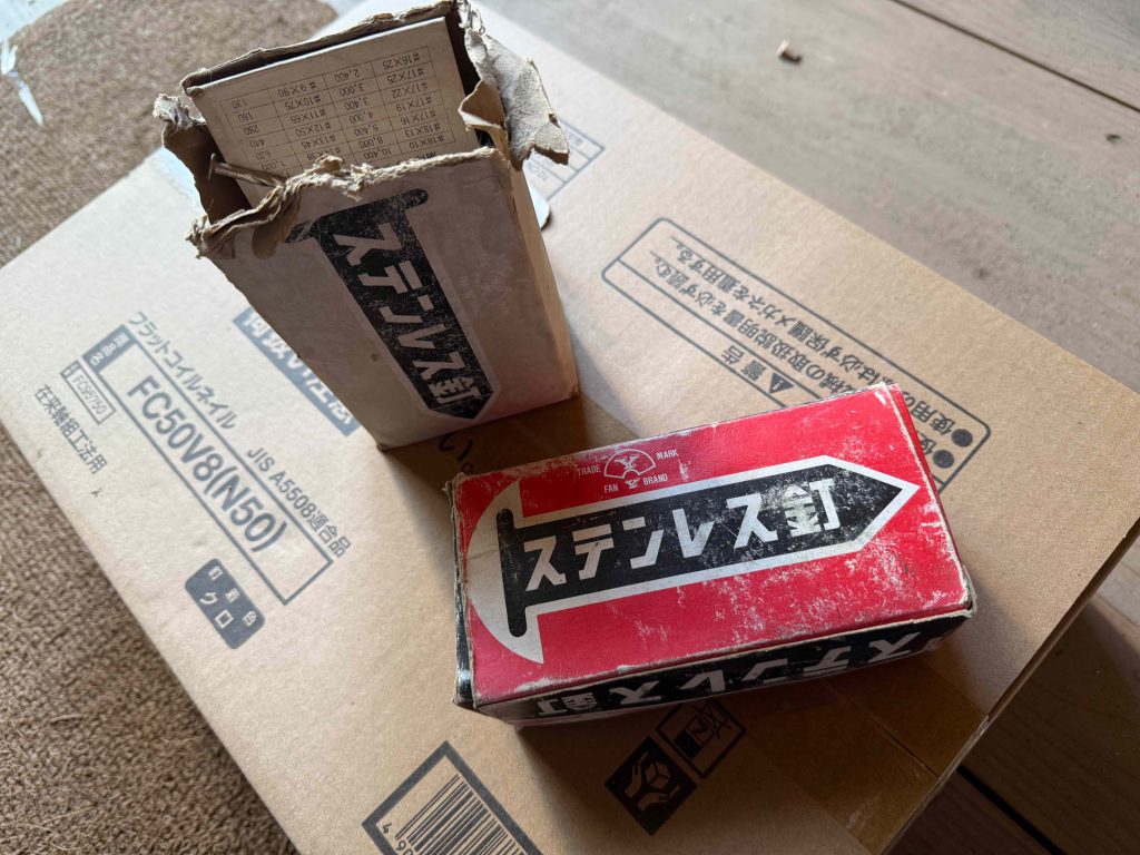 良質なもの 建築家のひとりごと 2025.10.08 庚午のいえは3階建なんで いつもといろいろ違うことが多いんですけど。 上棟の準備していて、、うちの倉庫で 好適なデッドストックを発見。 年代物と思われるステンレスの釘なんですけど、 キレイなもんです。 ホームセンターで売っているような プライベートブランドの品物であれば 同じ、「ステンレス釘」という名前でも たぶん、錆びついていたかもしれません。 物価高の時代なんで もちろん値段は大事ですけど、、 昔ながらのモノは やっぱ品質が良かったんですね〜 Prev Next 一覧へ戻る