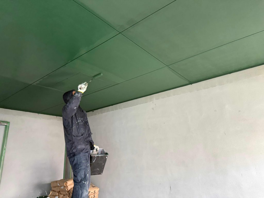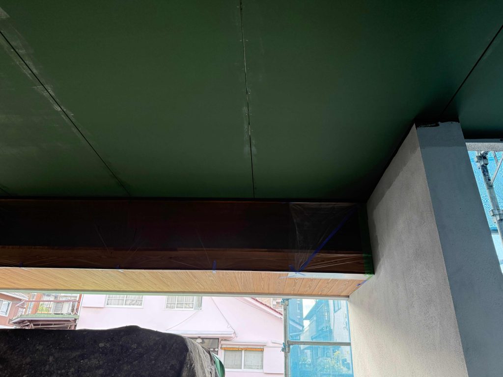 コールマングリーン@庚午の家 プロジェクトストーリー 2026.02.04 #塗装 今週から、塗装工事に入ってます。 外壁がメインなんですけど その他にもあって、 軒裏(車庫の天井など)をペンキ塗り。 この面ですね。 ここを ローラーで塗り塗り。 良い色ですね。 施主がキャンプ好きということで、 アウトドア用品メーカーの老舗、コールマンの イメージカラーである、グリーンをチョイス。 まぁ厳密にコールマンの緑と色合わせしたわけではありませんけど そういう、ちょっとしたストーリーがあると 愛着も湧いてくるもんでしょ? Prev Next 一覧へ戻る