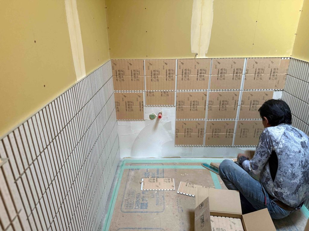 仕上げいろいろ@大島の食堂 プロジェクトストーリー 2026.02.23 #タイル#洗い出し 大工工事が、大方おわったんで 内装等仕上げに移っています ↑これは、トイレの腰壁に タイルをはってるとこ。 ↑キッチン、ビニルハウス貼ってもらってるとこ。 ↑これは、玄関ポーチ。 今回は、 洗い出しで仕上げてもらいました。 やわらか〜い雰囲気で、 かわいいですよね♩ Prev Next 一覧へ戻る