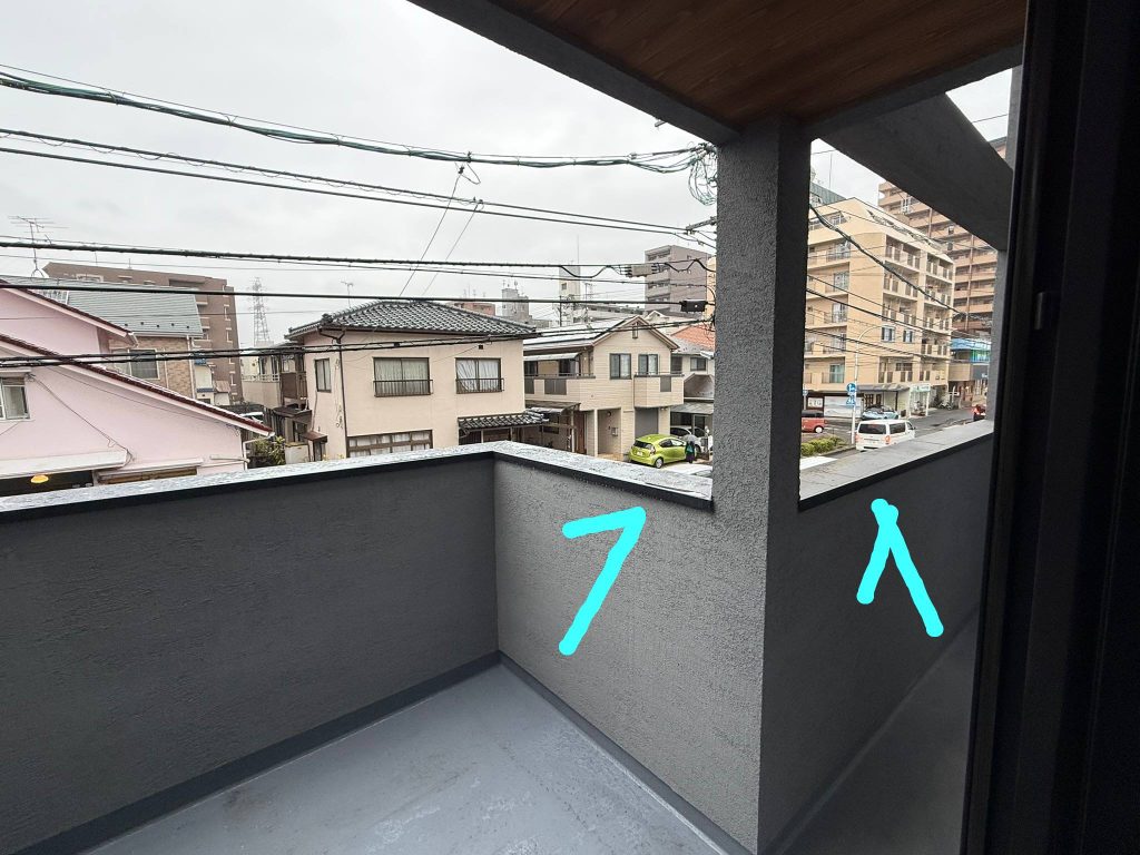 これは、笠木の設置勾配を内側に向けているからなんですけど、