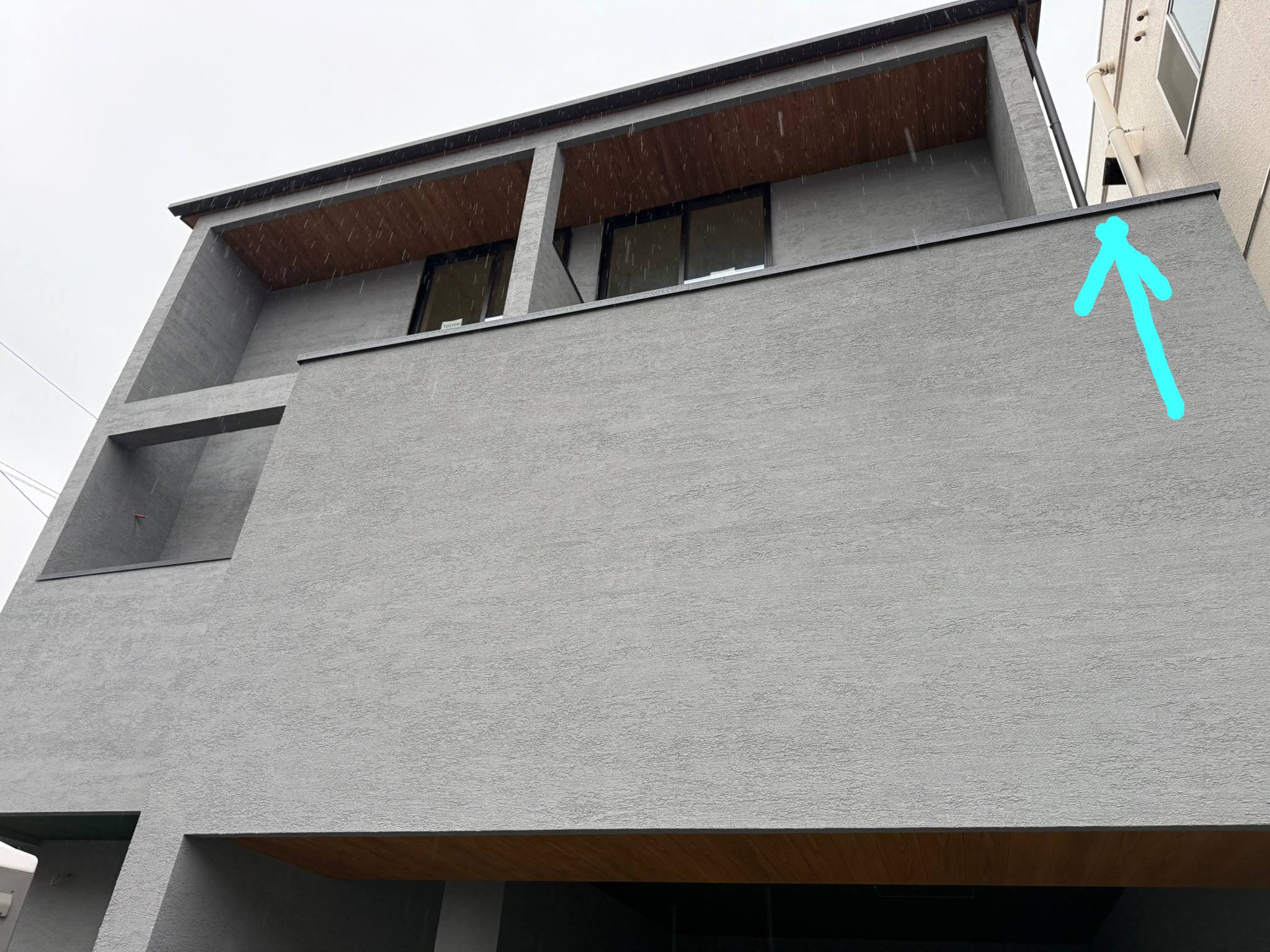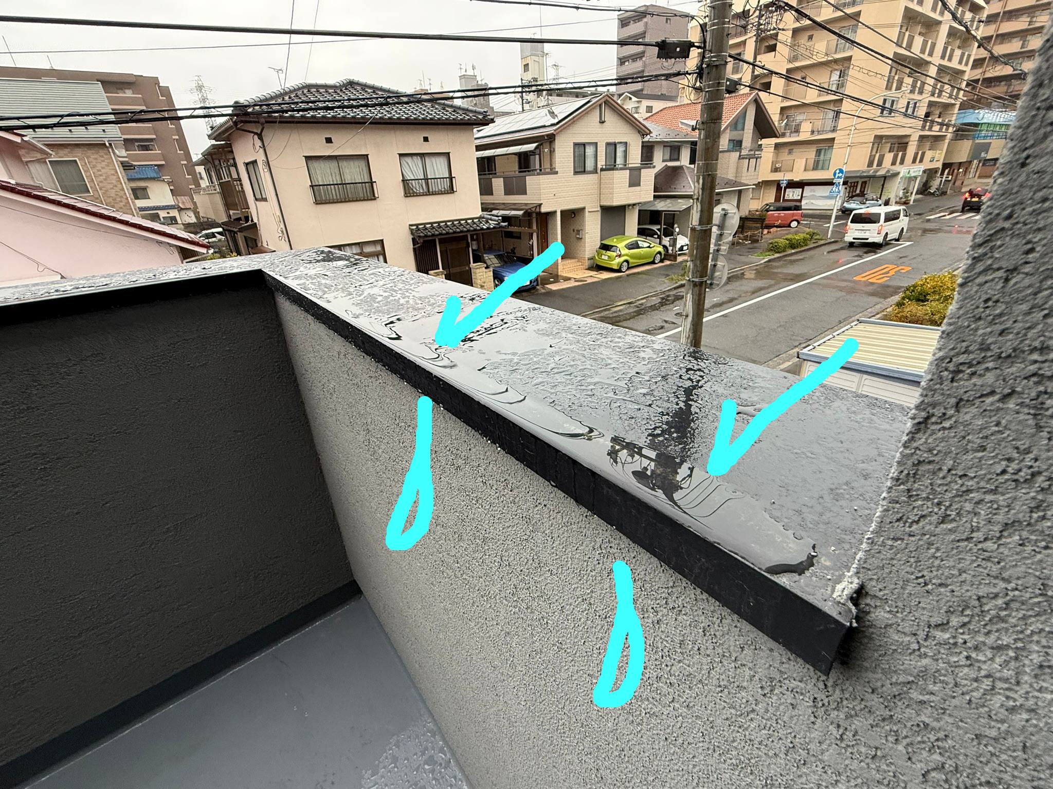 これは、笠木の設置勾配を内側に向けているからなんですけど、