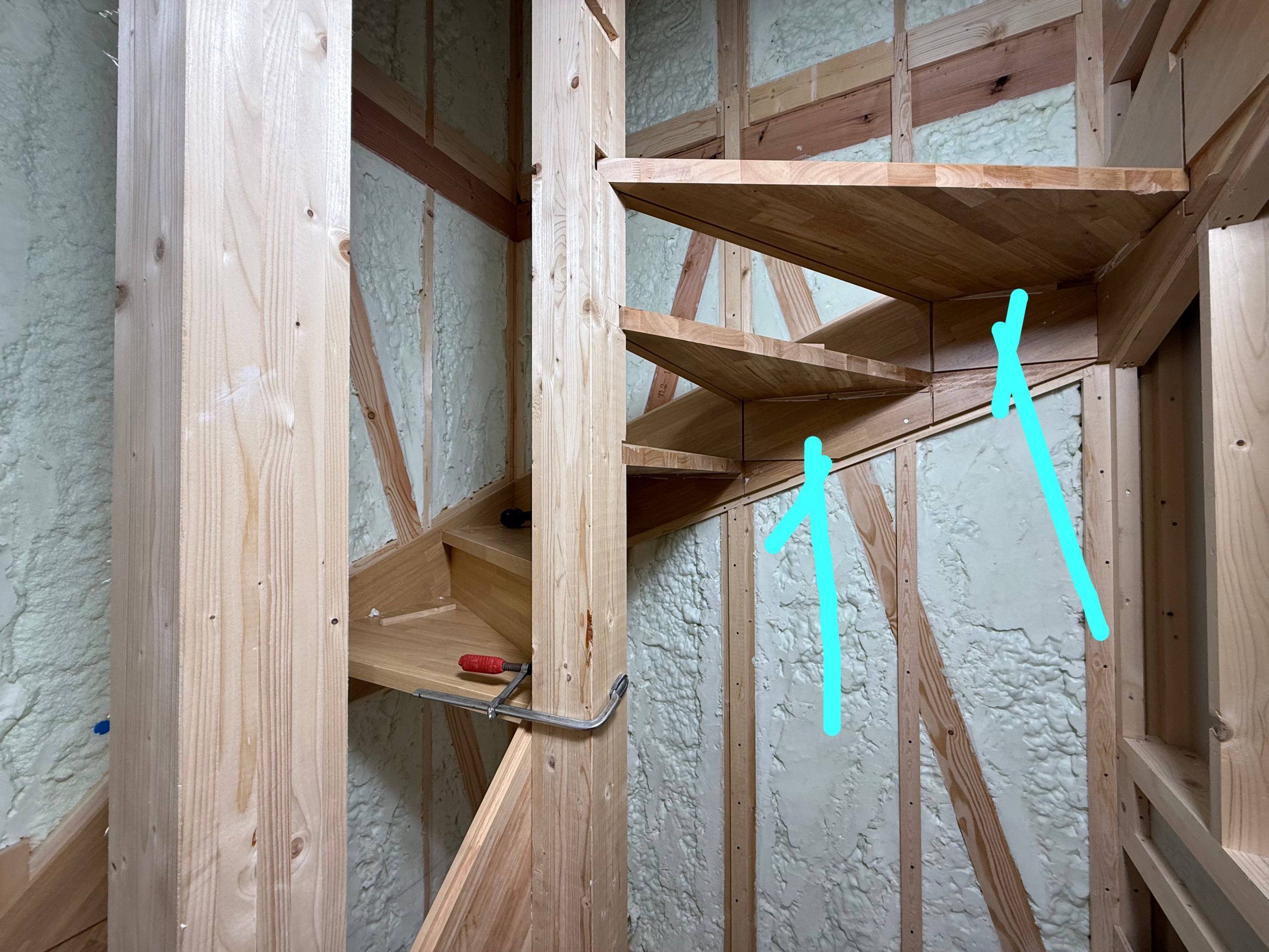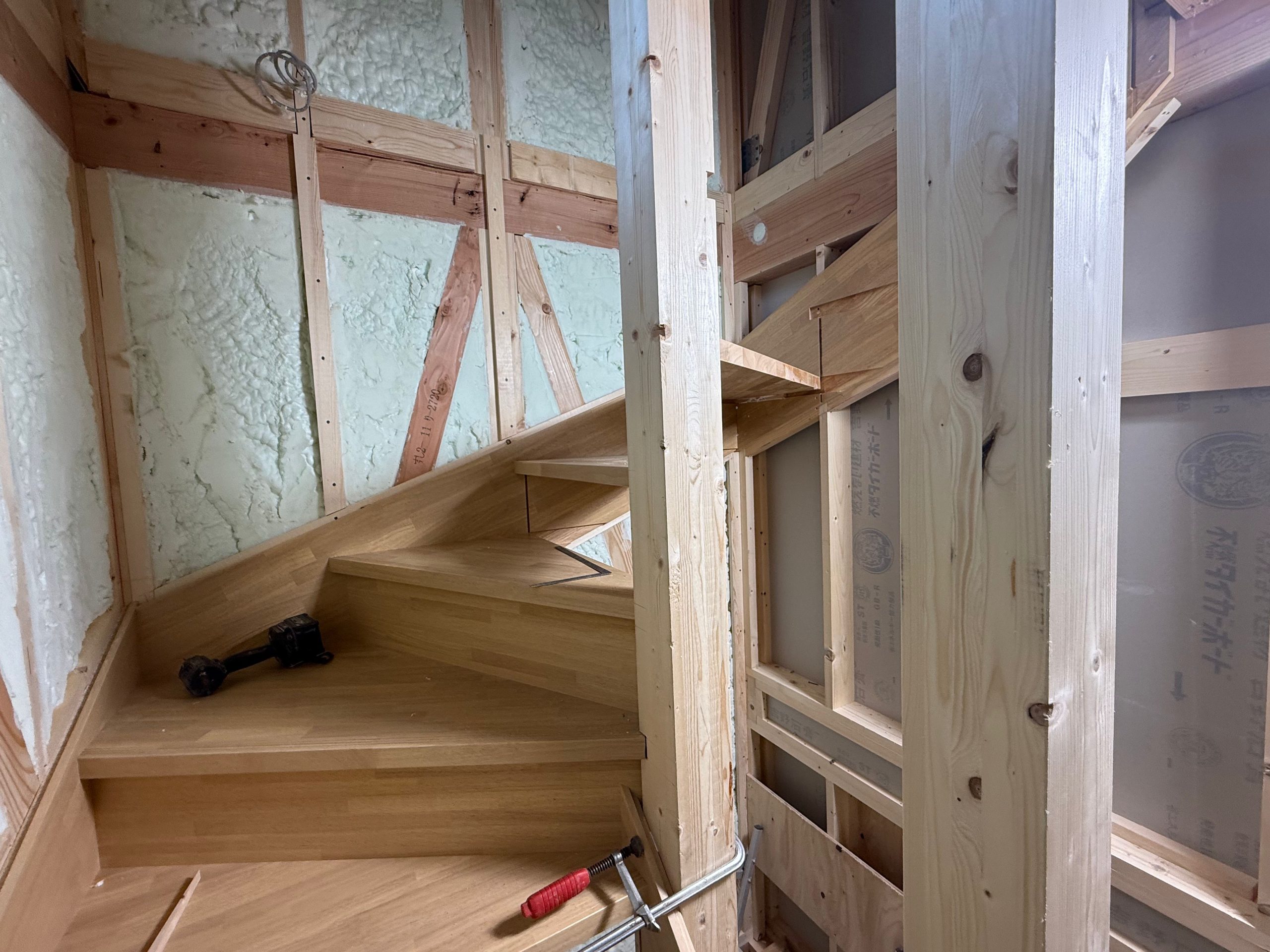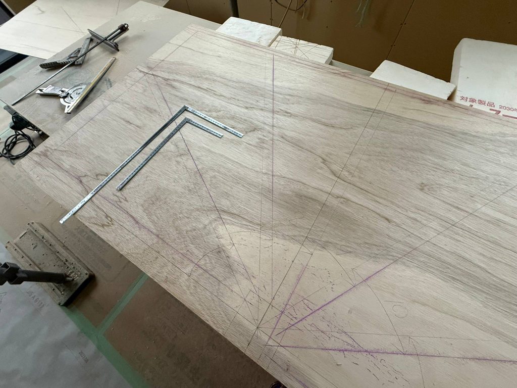 原寸図@庚午の家 プロジェクトストーリー 2026.03.01 これは、大工が描いた原寸図です。 原寸図というのは、1/1の図面。 この図面で、何をしているかというと、 階段の部材。 この部材の加工寸法等を検討しているんです。 こういった図面、 一朝一夕で描けるようにはなるものではありません。 カッコ良いでしょ? 階段は、大工工事のハイライトのひとつ。 階段ができると 現場の移動もラクになって作業効率もあがります。 大工工事も佳境にはいってきましたので 最後までがんばりましょう♩ Prev Next 一覧へ戻る