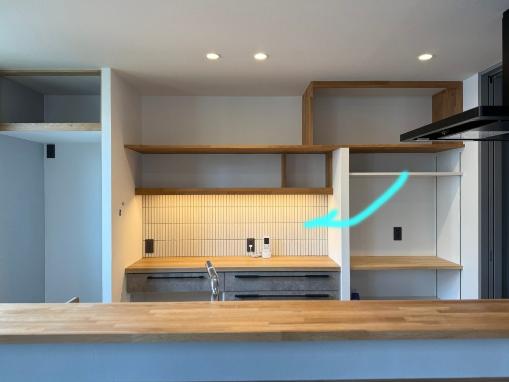 つづけて、キッチン。の後ろのカップボード上に注目。