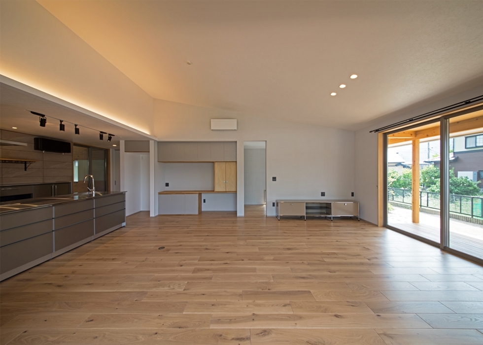 設計/施工 旭工務店 竣工年 旭工務店 延べ床面積 169㎡(約51坪)平屋 顧客年齢層 御夫婦+子供2人+親御様2人 コンセプト 隣接するレストラン&畑 とのつながりを大切に。 4世代がバリアフリーに暮らす、ゆったり平屋。 工事金額 4,070万円 工事期間 8ヶ月