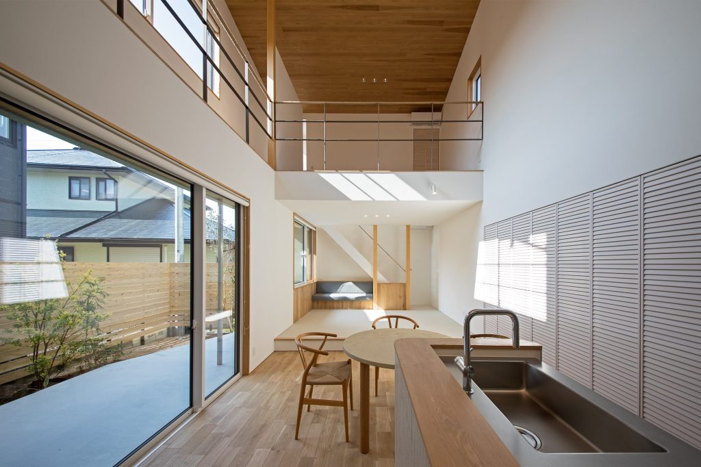 水廻りを陽のあたる場所に。 脱衣室やLDKを、中庭を囲うかたちで配置することでプライバシーの確保と採光を両立させました。